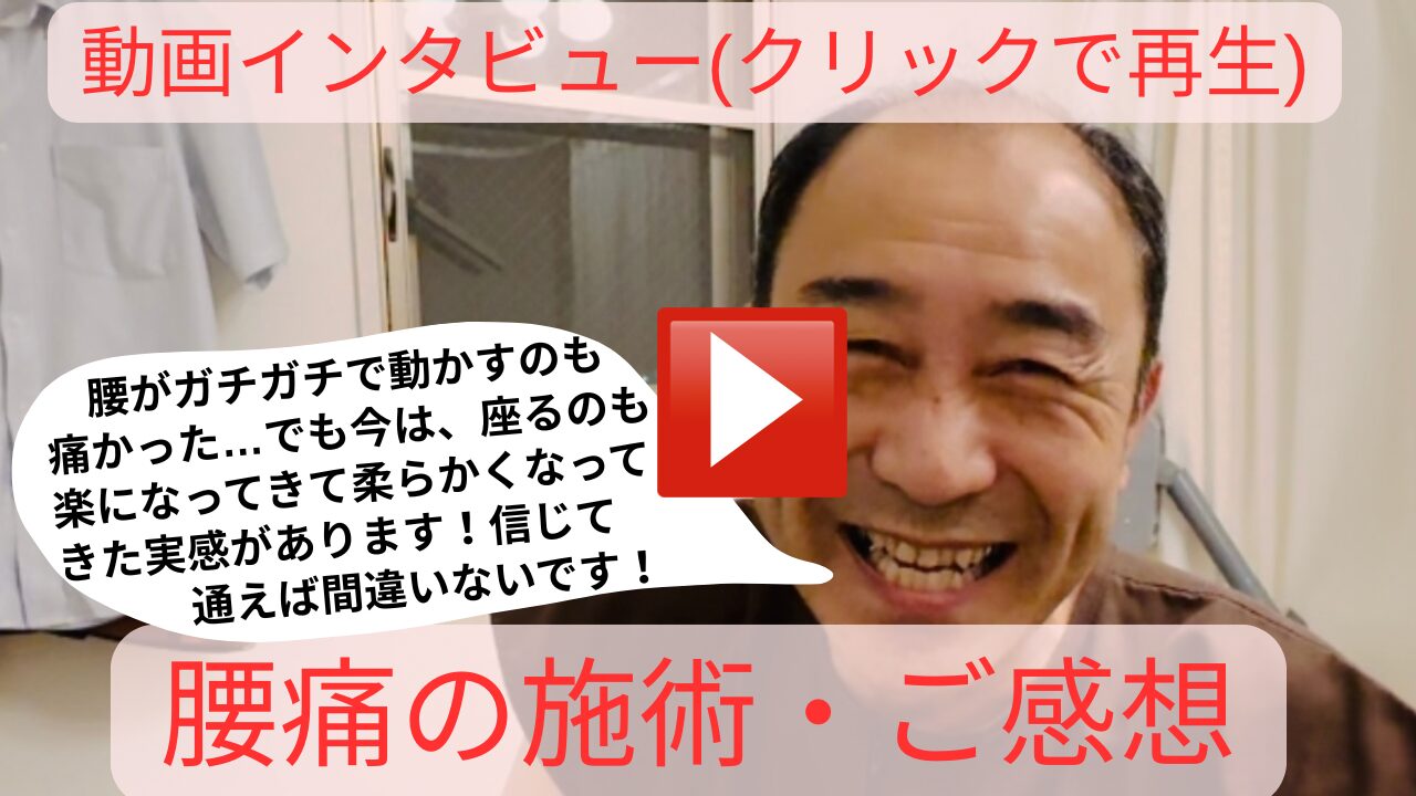 治療院に来た時は、腰がもう全く曲がらん感じで、ガチガチに固まってる感じで少し動くだけでも痛かったりした状況でした。