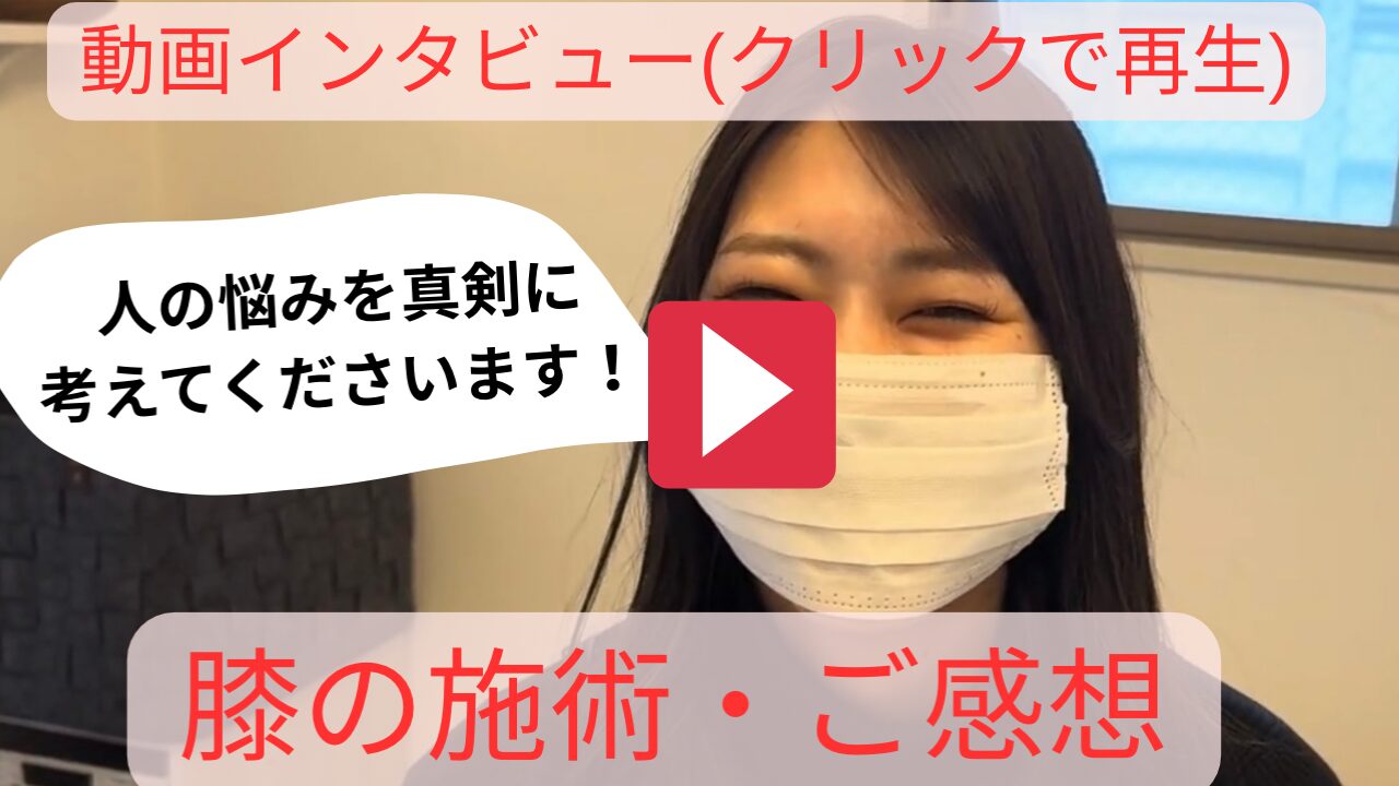施術を受けてからは、だいぶ痛みがない日とかもあったりして、膝の痛みを考える時が少なくなりました。