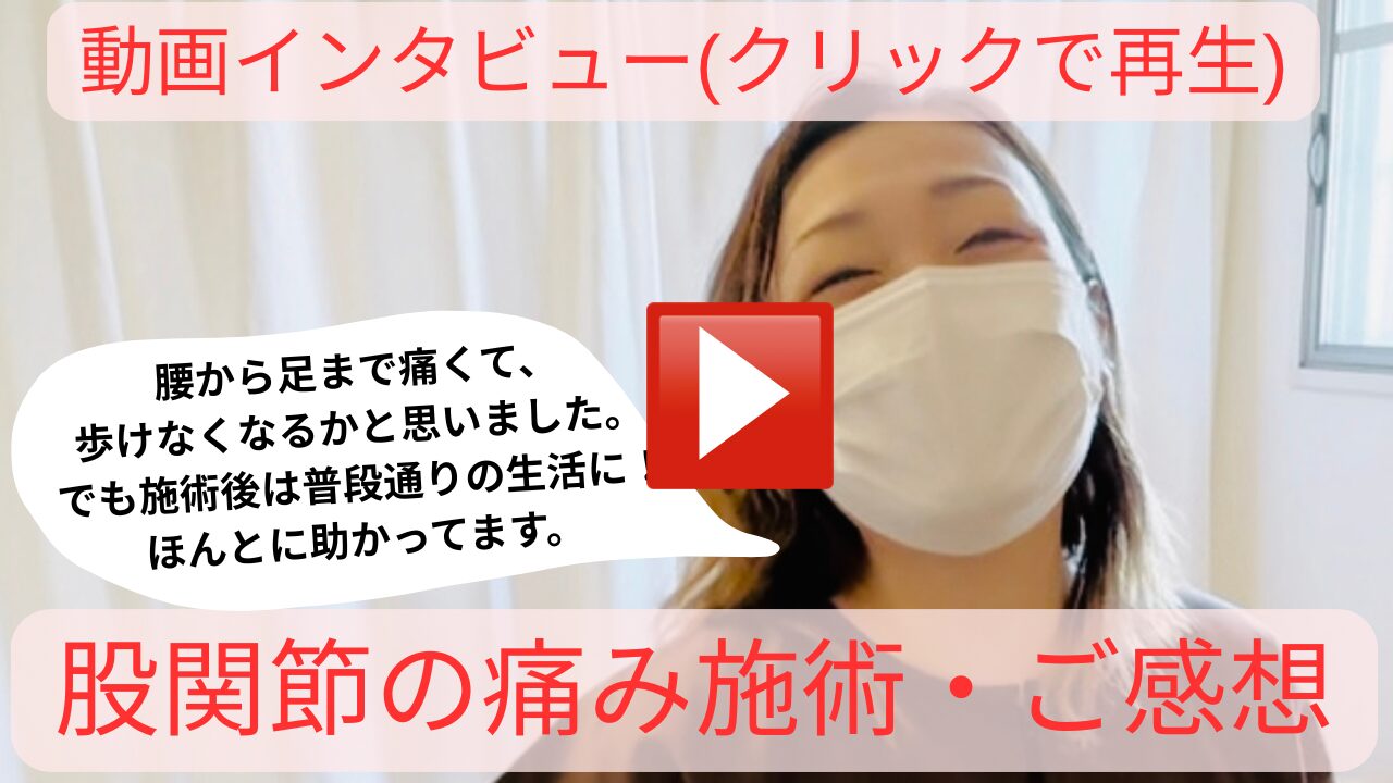 施術を受けてからはもう以前(痛くなる前)に近い感じで、普段は普通に過ごせてます。